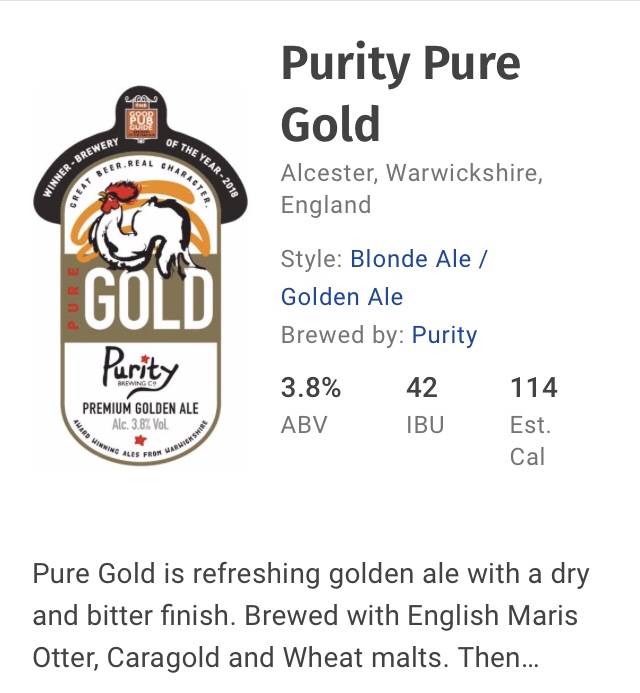 We had a pint of Purity Gold….