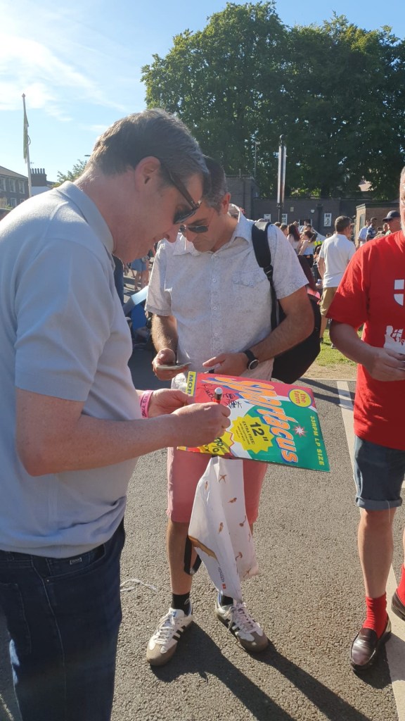 and met up with some Farm fans who’d brought their records with them for us to sign.