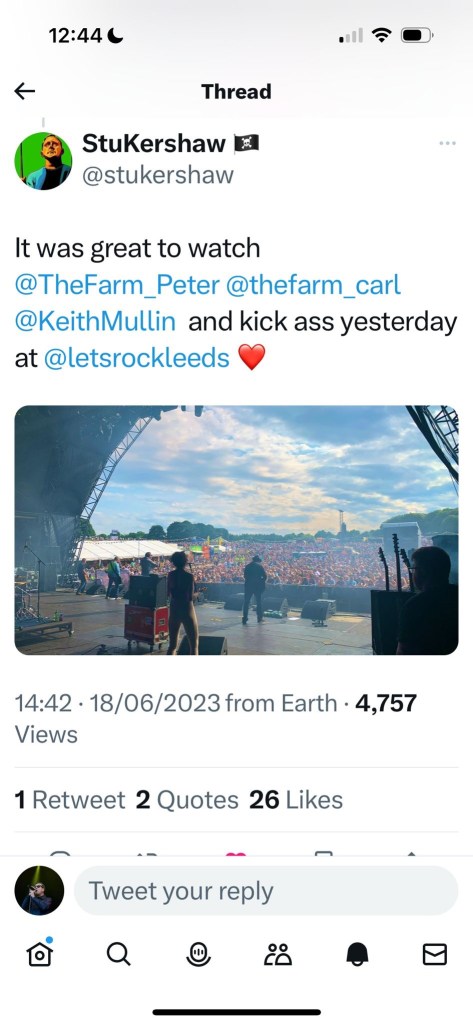 Great praise from Stu Kershaw, OMD’s drummer – the band had arrived early in order to catch our performance!