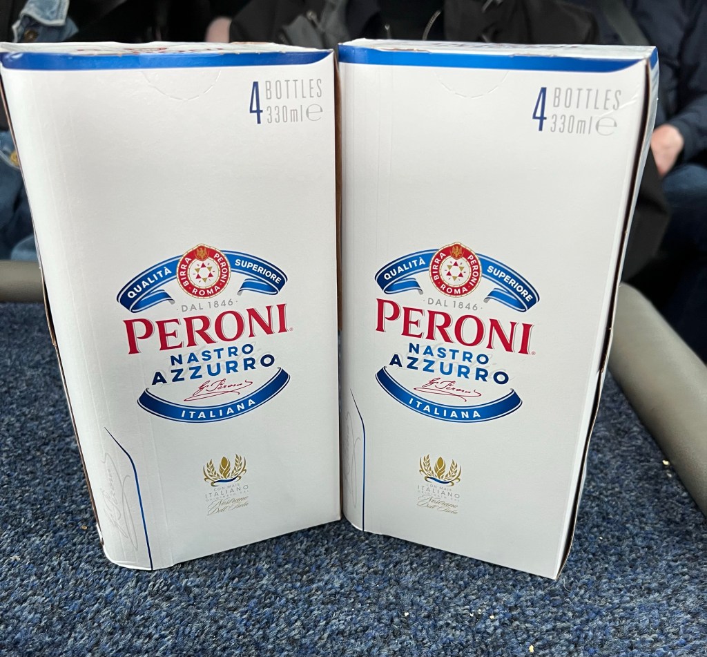 We have to top up the rider at Rewind so a couple of packs of Peroni bought early doors…