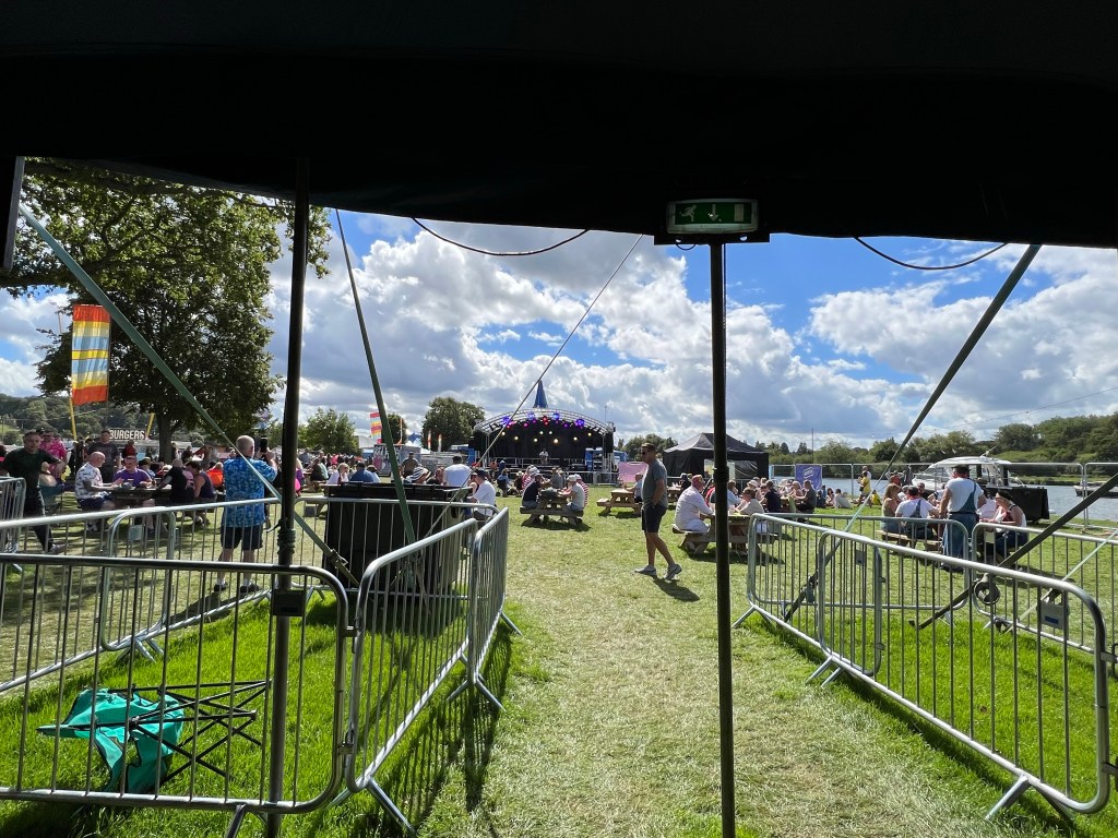 Looking out from inside the tent you could see a small stage which had acts on throughout the day…