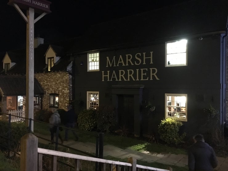 The night before we had sneaked out of the hotel to a pub called The Marsh Harrier…