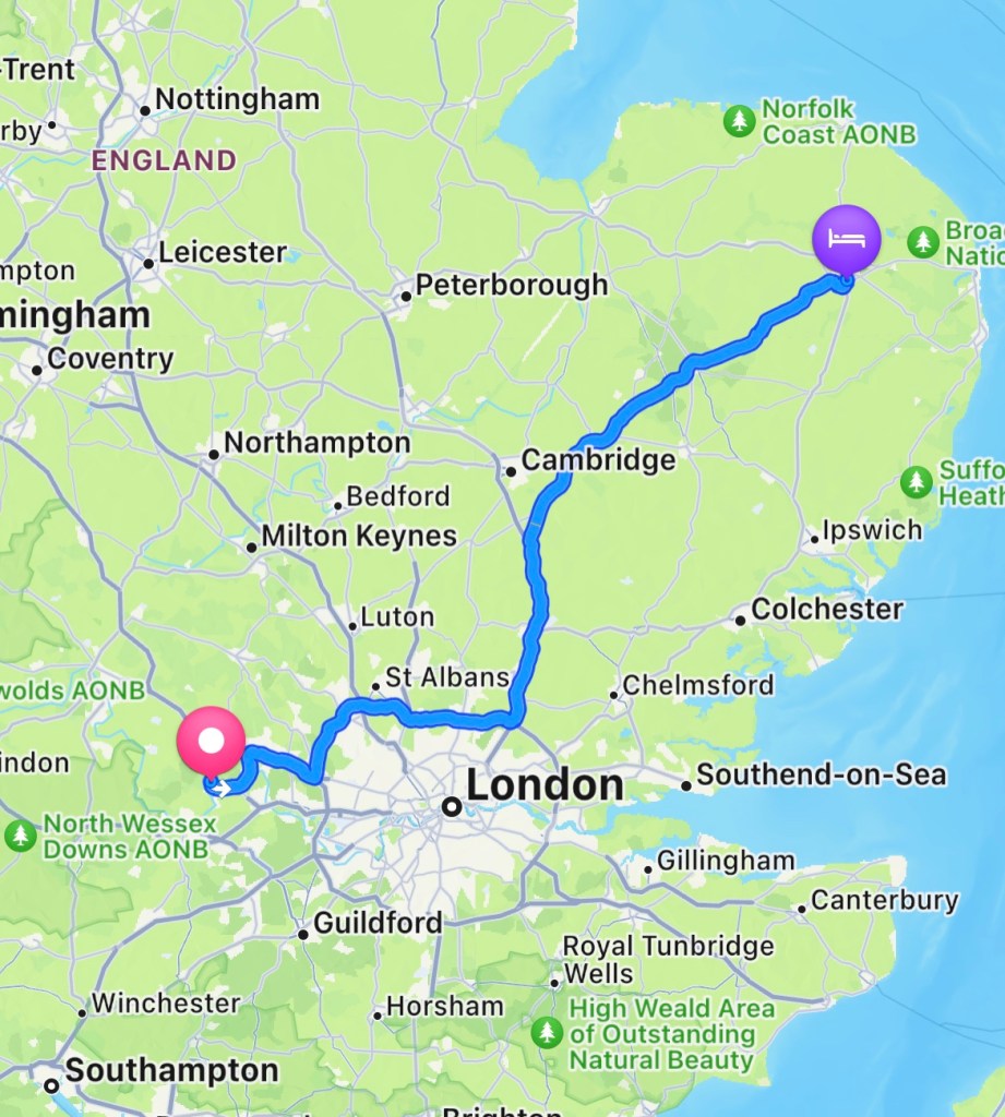 Norwich to Henley is about 2 hours 45 minutes…