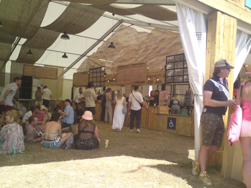 Took absolute ages to walk back from the Other Stage to the Left Field tent but eventually found Carl in a bar…