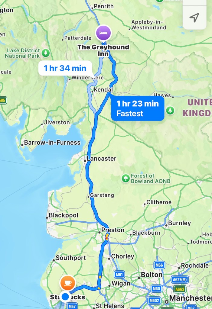 We’d arranged to meet up at Starbucks at the first junction of the M58…