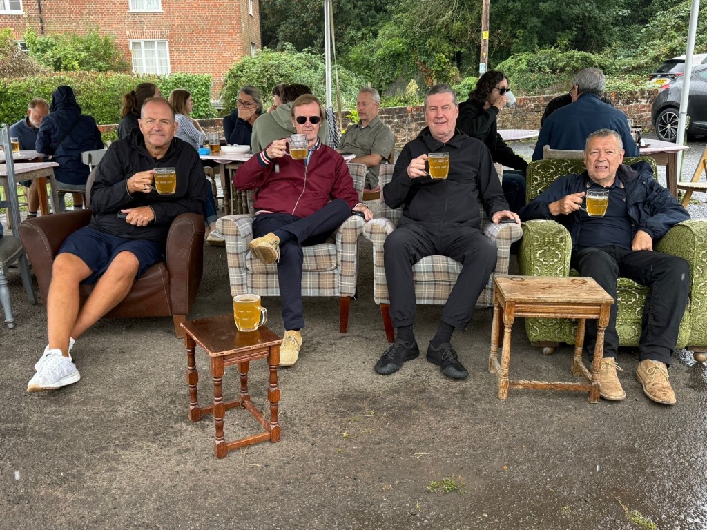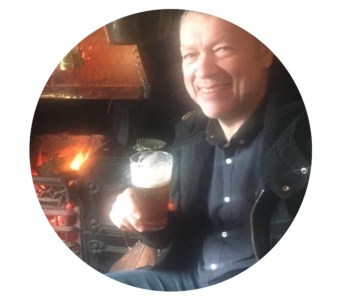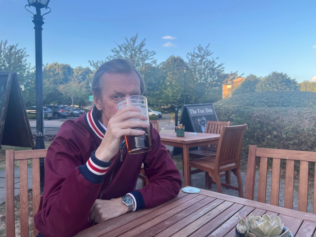 Taking the drinks outside, Peter can be seen here holding the limited edition Fuggles & Goldings…