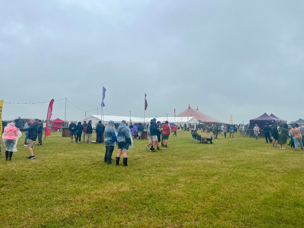 As it was now raining hard, we took the beer into the tent stage where a Police tribute band were on…