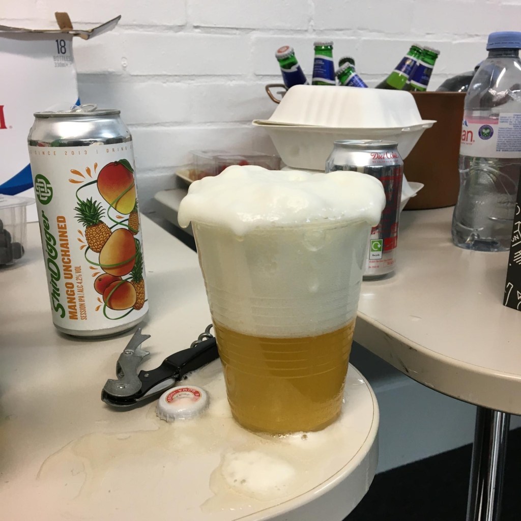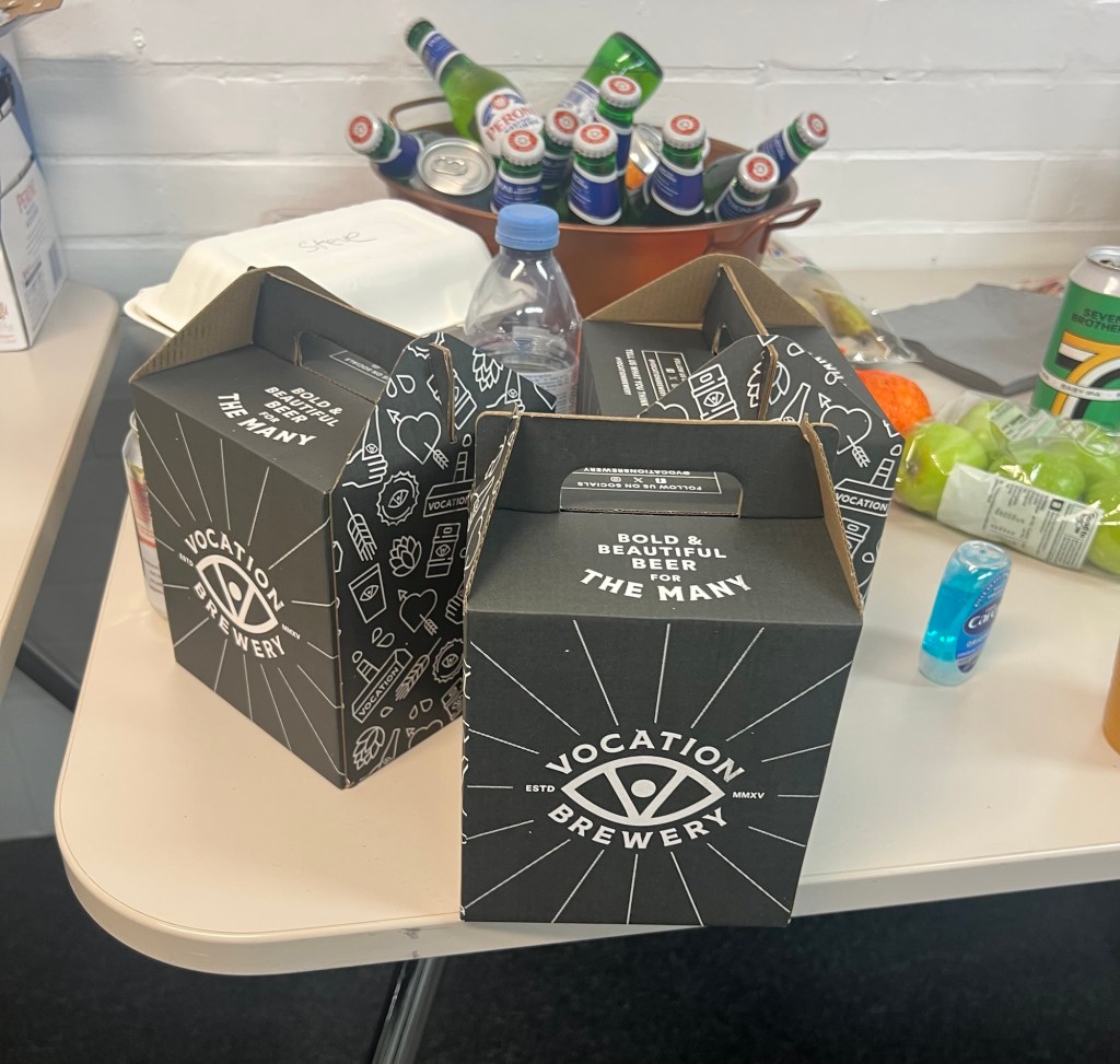 Back in the dressing room, the Sheffield lads had bought us some boxes of Vocation Brewery beer…