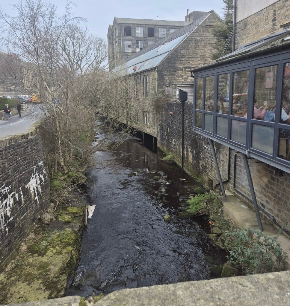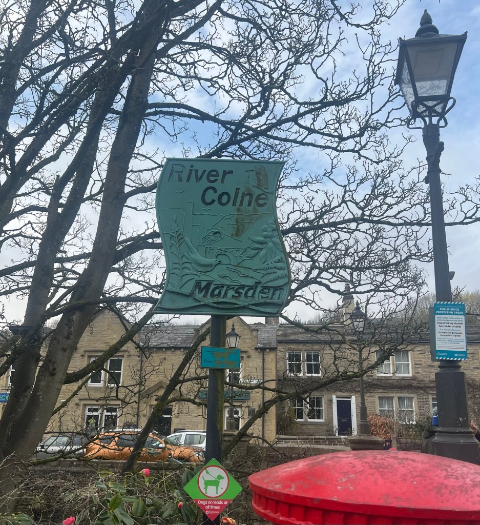 Carl had given his to this friendly mut!The River Colne in West Yorkshire rises near Marsden at the confluence of Redbrook Clough and Haigh Clough, 768 feet up in the Pennines. It flows east through the village, joining with Wessenden Brook before passing toward Slaithwaite, forming a 12-mile-long, historically significant “stony river”