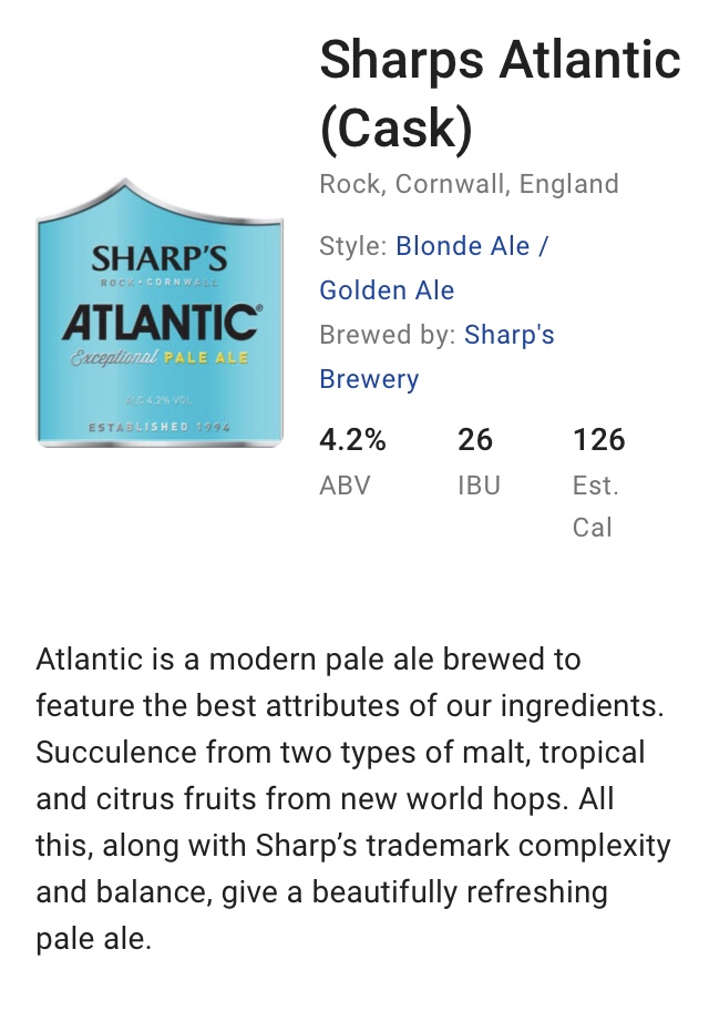 Spent a couple of hours drinking Atlantic Pale Ale on draught, not too strong and a nice flavour.