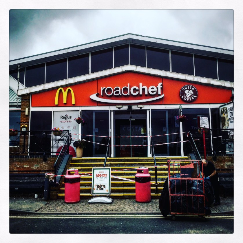 Stop off at the roadchef for food and drink – “The glamour of life on the road”