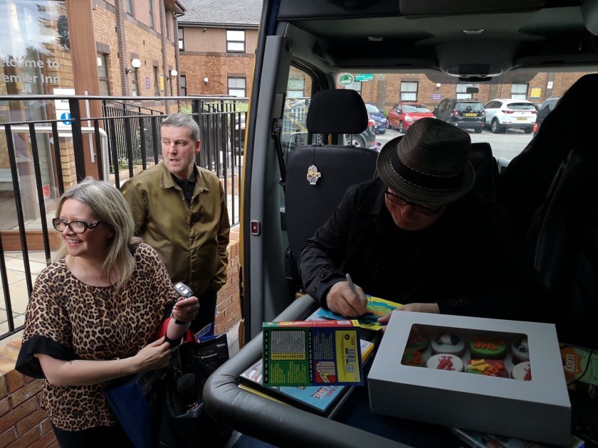 Arrived in town to get on the bus – Keith was going ahead with our manager in the car, we had to be there handy as we were on at 2pm.