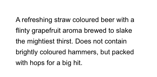 Served on hand pump in the Artisan Beer Tent, buttery with a full, smooth mouthfeel with a nice ending bitter note.