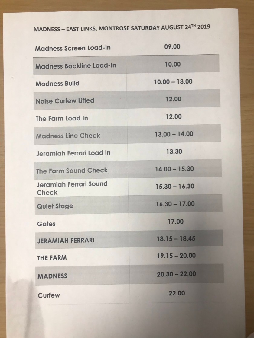 It was a brilliant gig but we had to get straight off. We said our goodbyes to Madness……